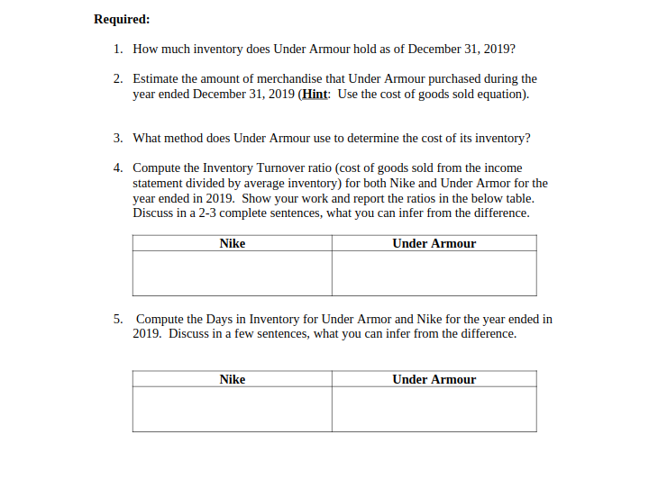 Solved Required 1 How Much Inventory Does Under Armour Chegg Com